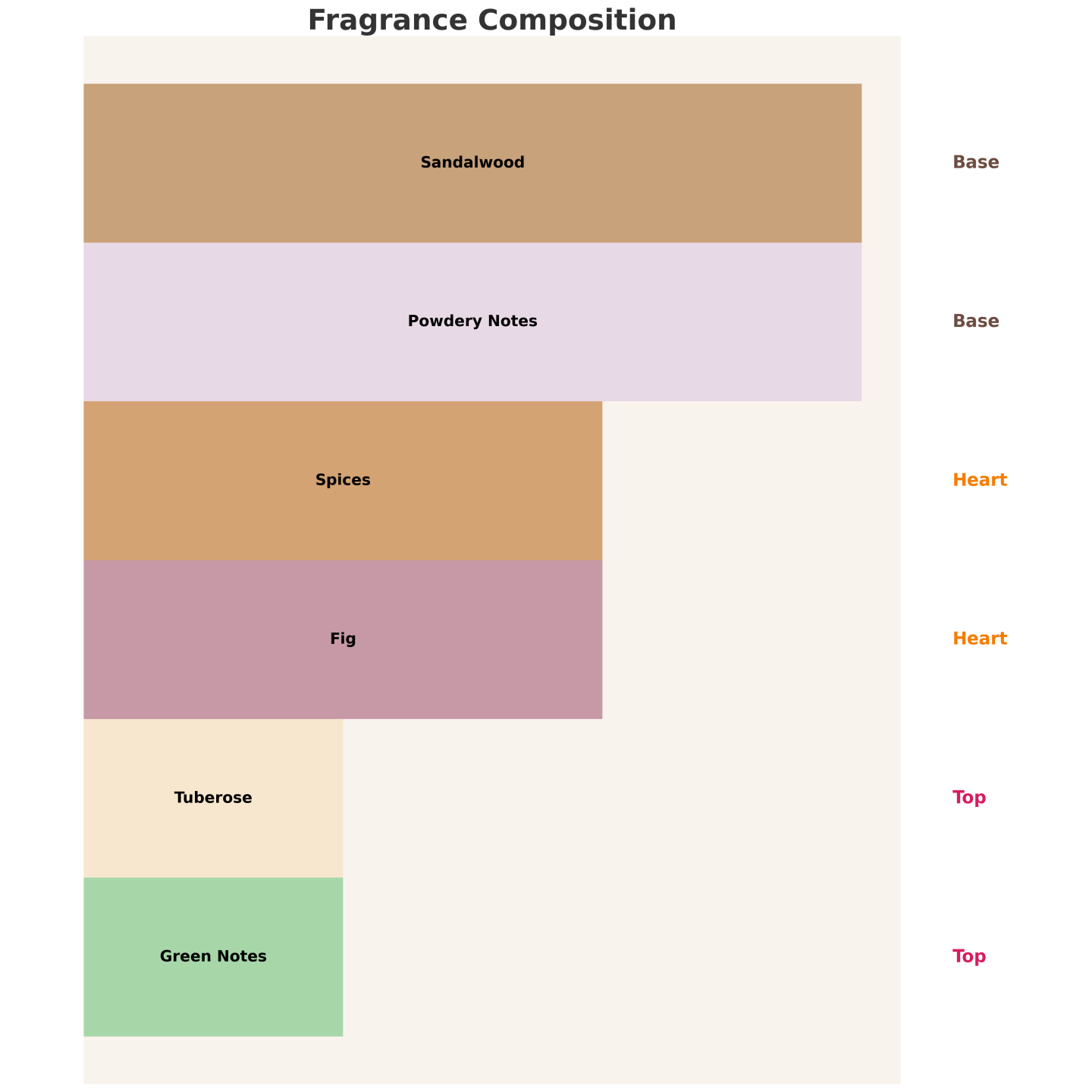 Es ist eine frische, elegante fruchtig-florale Komposition mit grünen Akkorden, Tuberose, Feige und einem pudrigen Abgang.