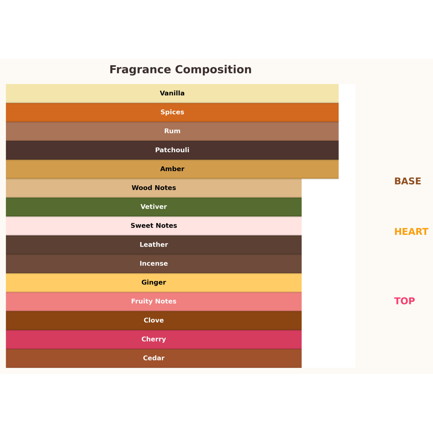 ✔ Herznoten: Rum, Gewürze, Ingwer, Nelke, Zeder, Holz