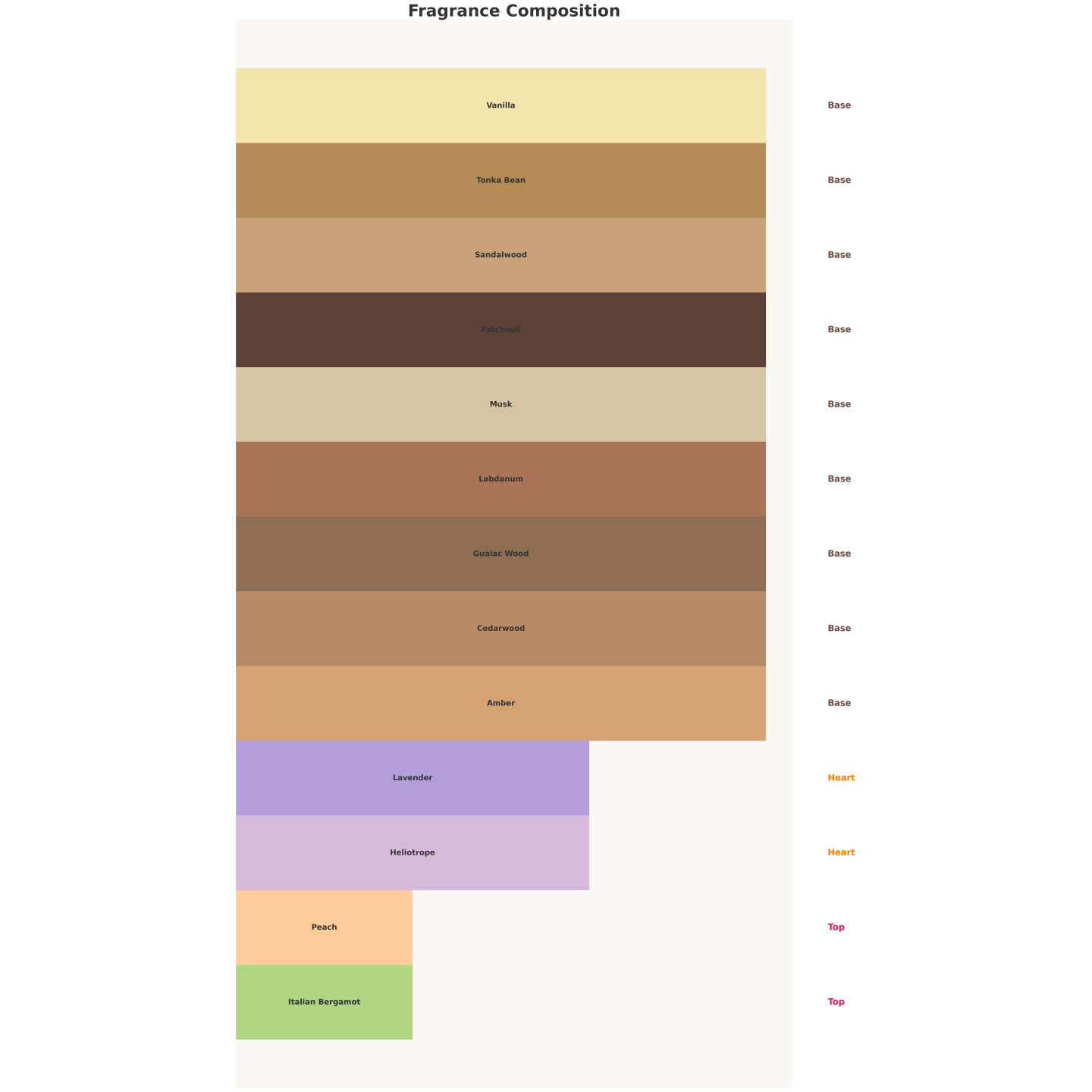 ✔ Basis: Tonkabohne, Patschuli, Amber, Vanille, Labdanum, Guajakholz, Moschus, Zedernholz, Sandelholz