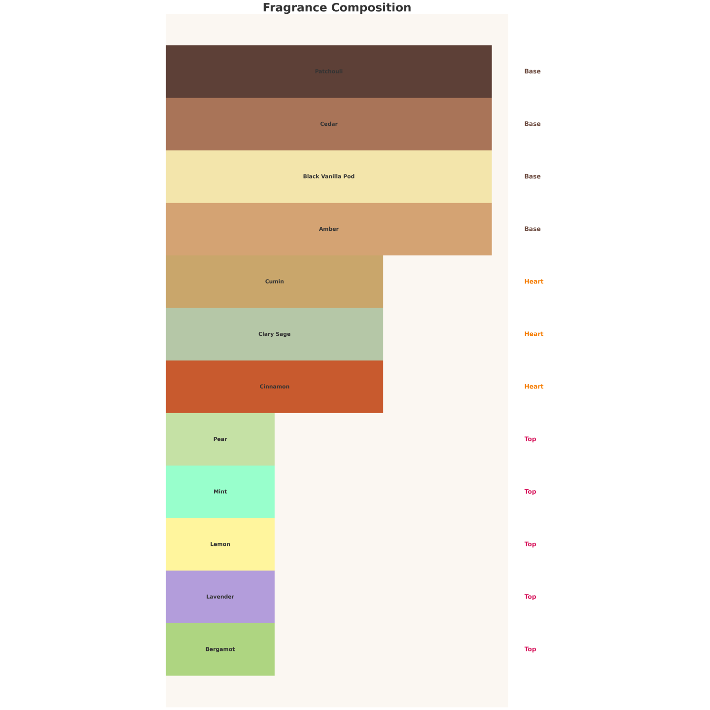 ✔ Cœur : Cannelle, noix de muscade, sauge, cumin