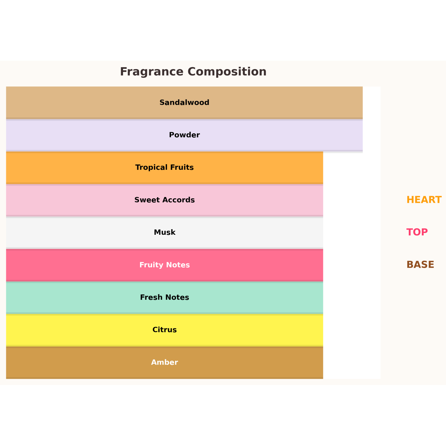 ✔ Cœur : poudre, fruits tropicaux, notes fraîches