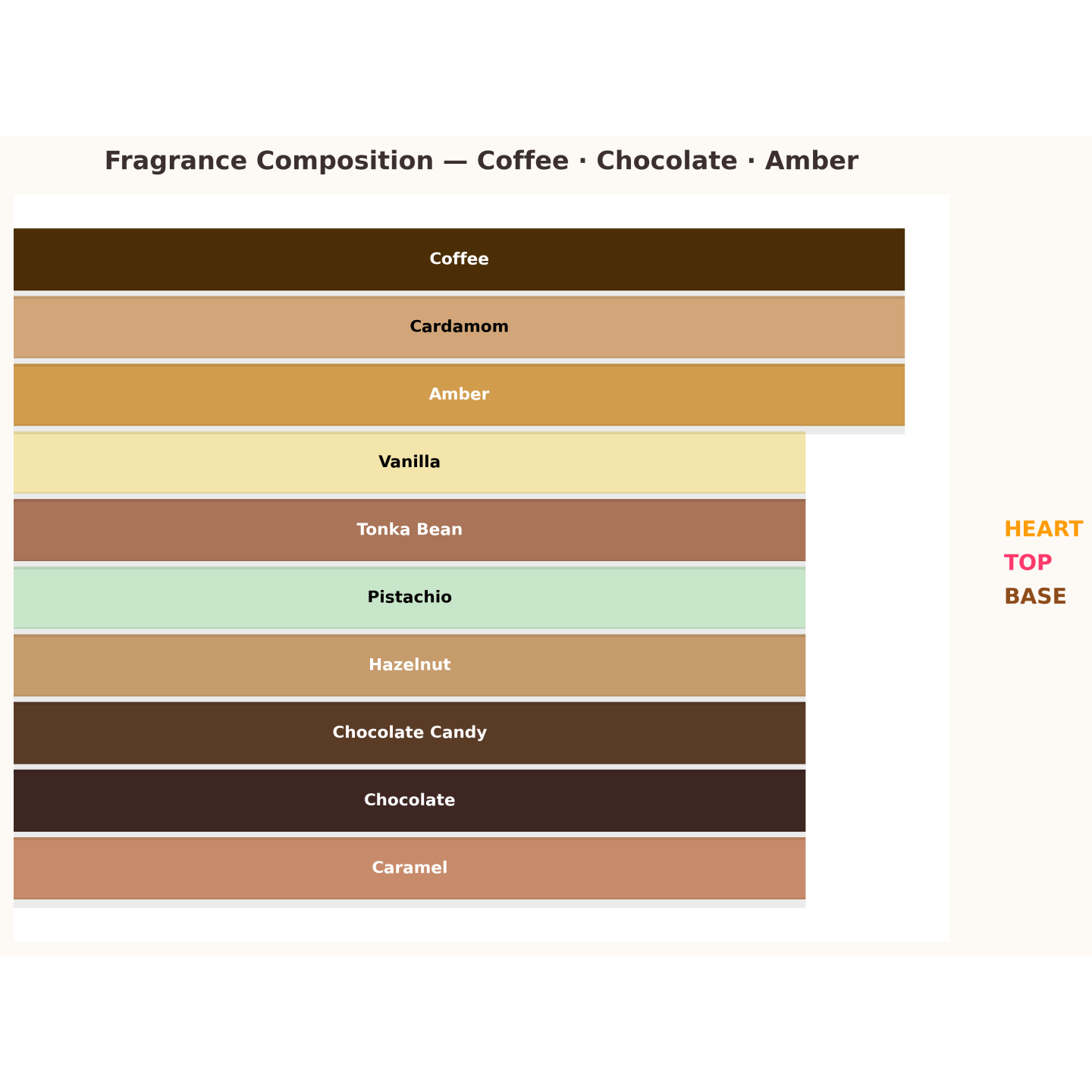 ✔ Notes de tête : café, pistache, chocolat, noisette