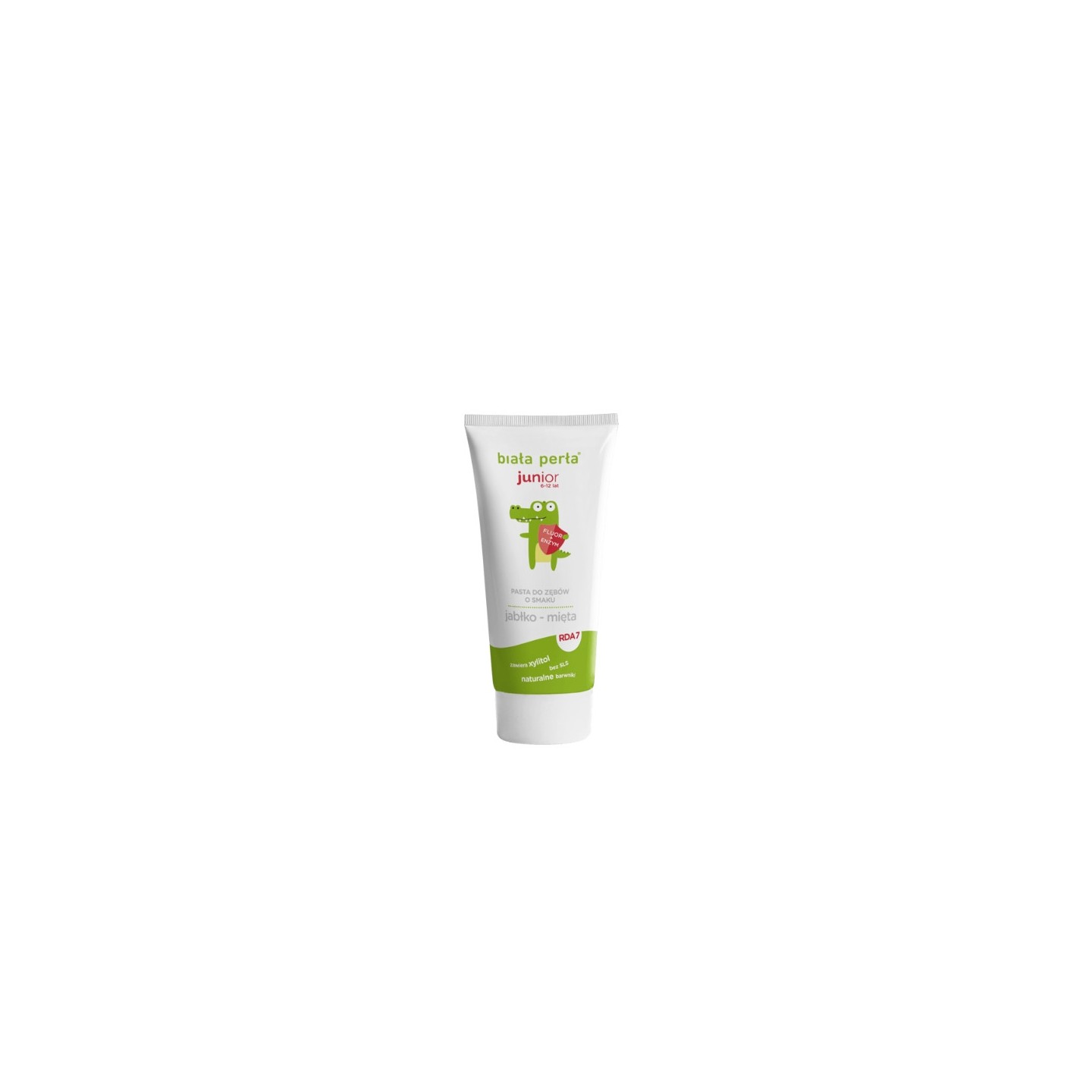 Biała Perła Junior est un dentifrice sûr pour les enfants de 6 à 12 ans, au goût pomme-menthe, qui nettoie efficacement, renforce les gencives et protège contre les caries.