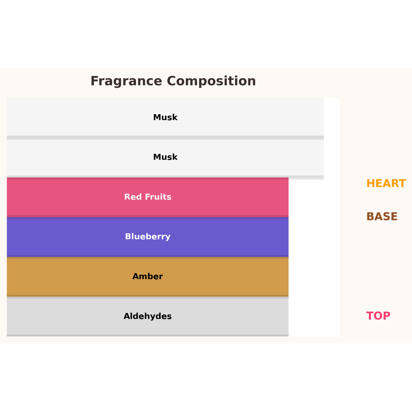 ✔ Notes de cœur : musc, myrtille, fruits rouges