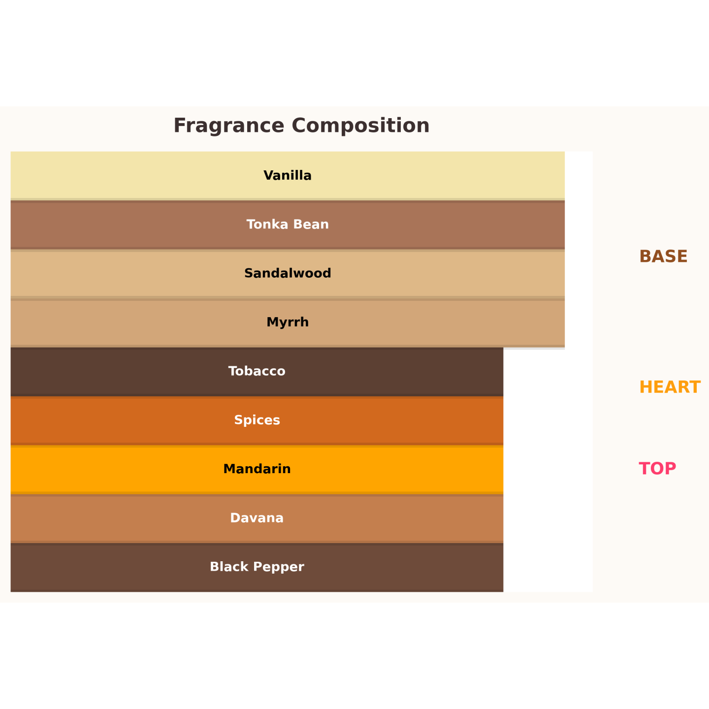 ✔ Cœur : myrrhe, poivre noir, bois de santal