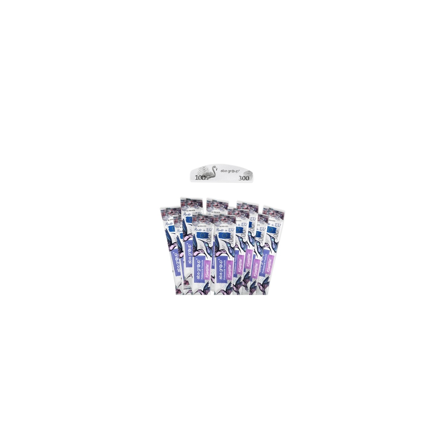 Le polissoir Safe Package Aba Group Mini Crescent 100/300 est un polissoir de précision à emballage individuel permettant de matifier et de lisser la plaque de l'ongle, idéal pour le travail en salon et la préparation des ongles pour une manucure hybride.