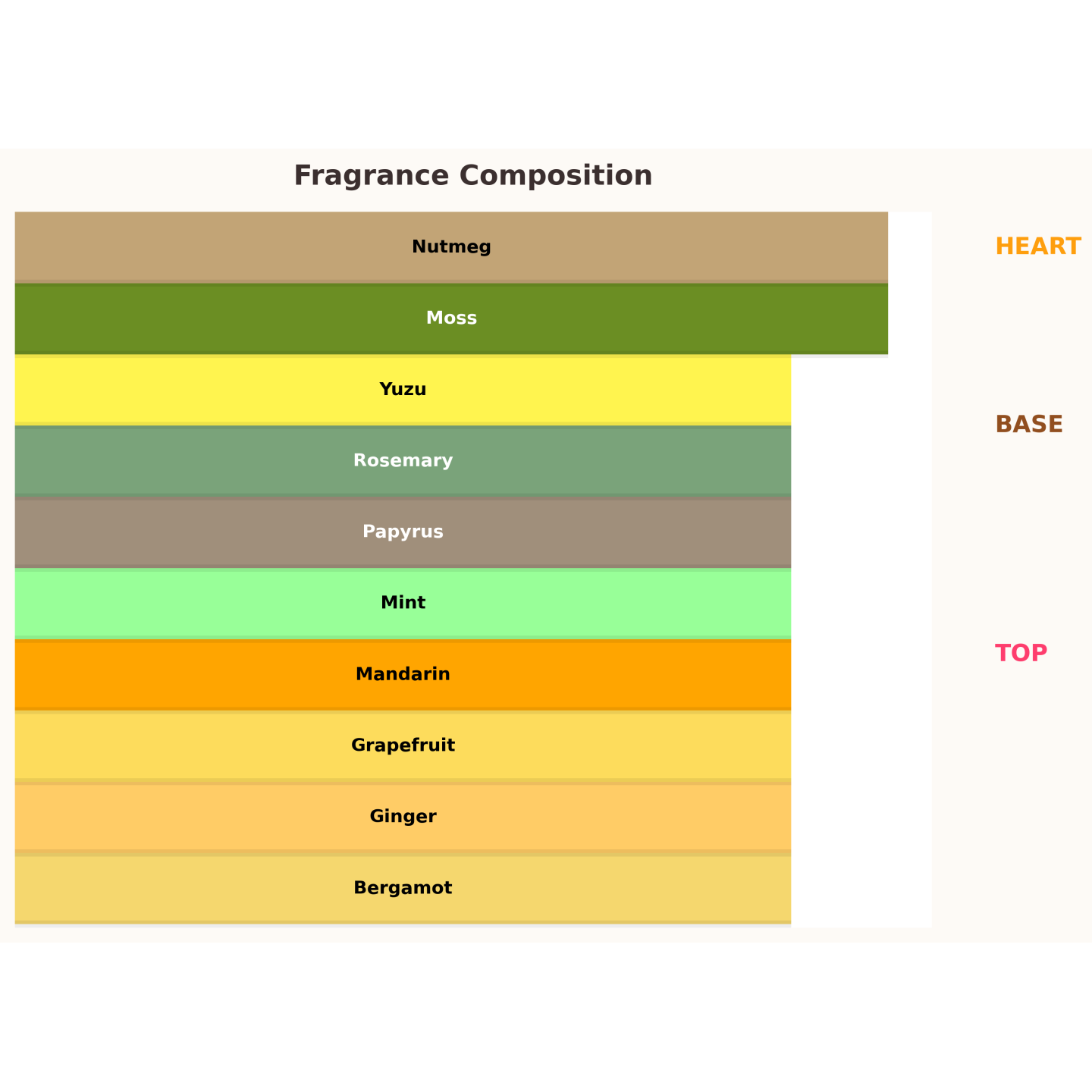 ✔ Top: mandarin, ginger, bergamot, grapefruit, mint, rosemary, yuzu