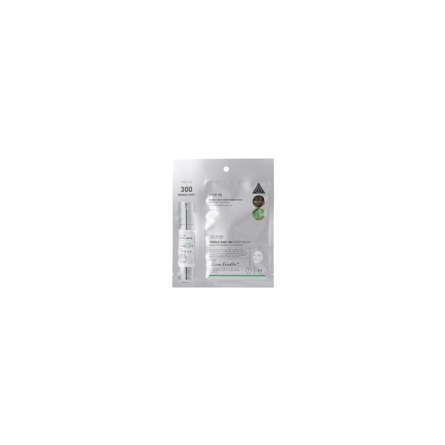 Apply the STEP 1 Reedle Shot 300 ampoule to cleansed skin and spread evenly. Once fully absorbed, apply the STEP 2 mask and leave on for 10–20 minutes. After removing, pat in any remaining essence until fully absorbed.