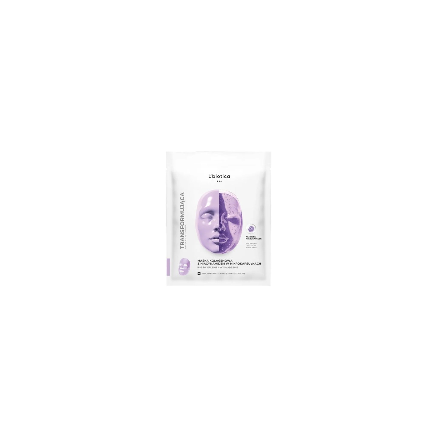 • L'Biotica Rozświetlenie i wygładzenie kolagenowa Maska do twarzy w płachcie z niecynamidem 1 sztuka
