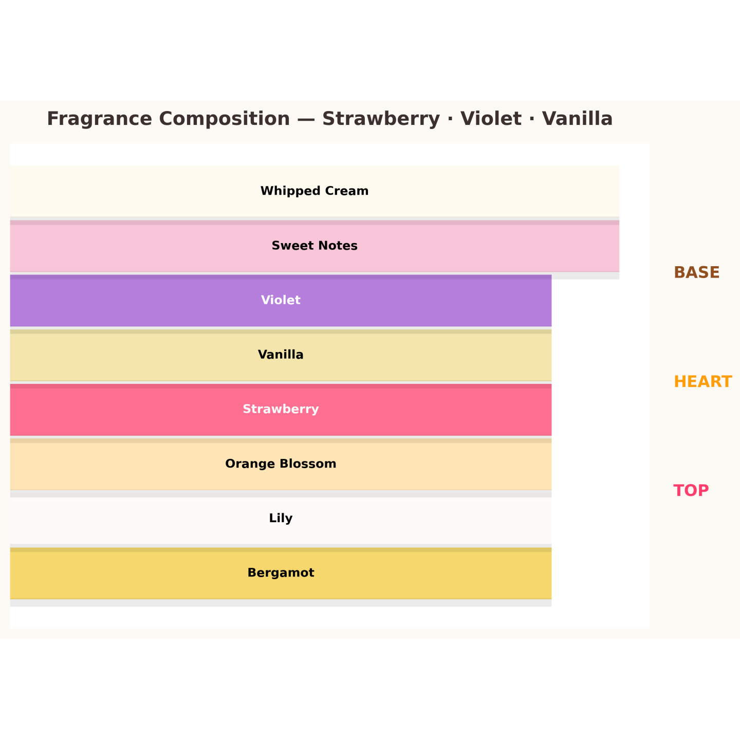 ✔ Hart: zoete noten, viooltje, lelie, oranjebloesem