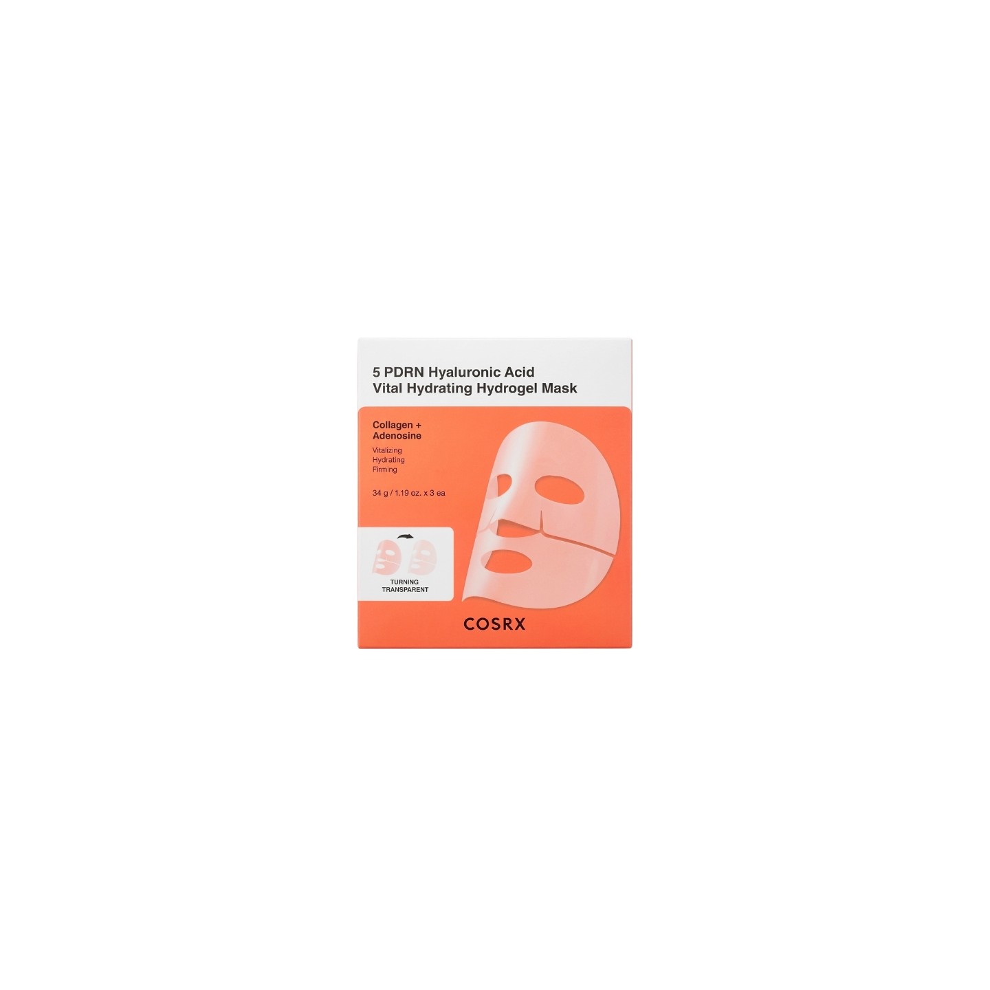 • Cosrx 5 PDRN Hyaluronic Acid Vital Hydrating Hydrogel Mask Set van hydraterende hydro 34 g - 3 stuks