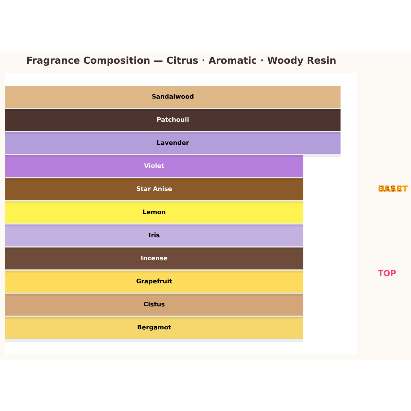 ✔ Basis: patchouli, sandelhout, zonneroos, iris