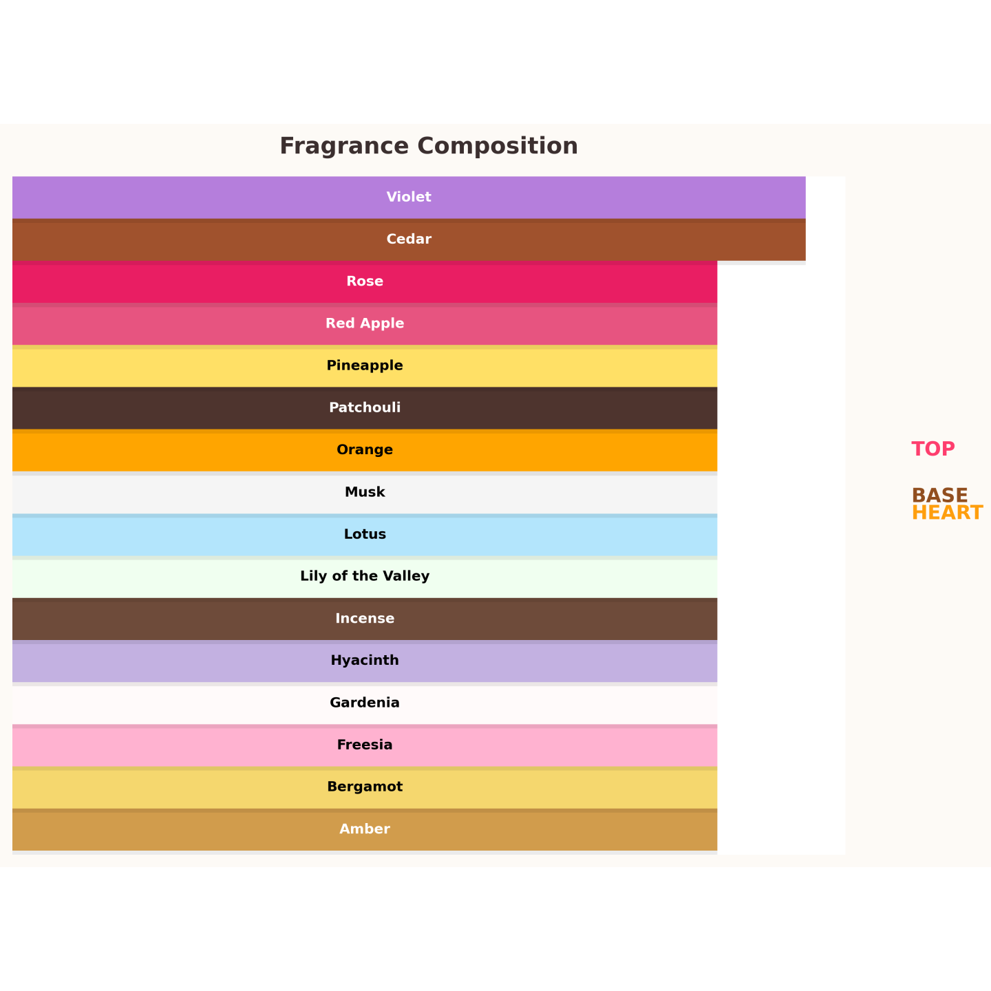 ✔ Serce: fiołek, frezja, gardenia, hiacynt, czerwone jabłko, konwalia, lotos