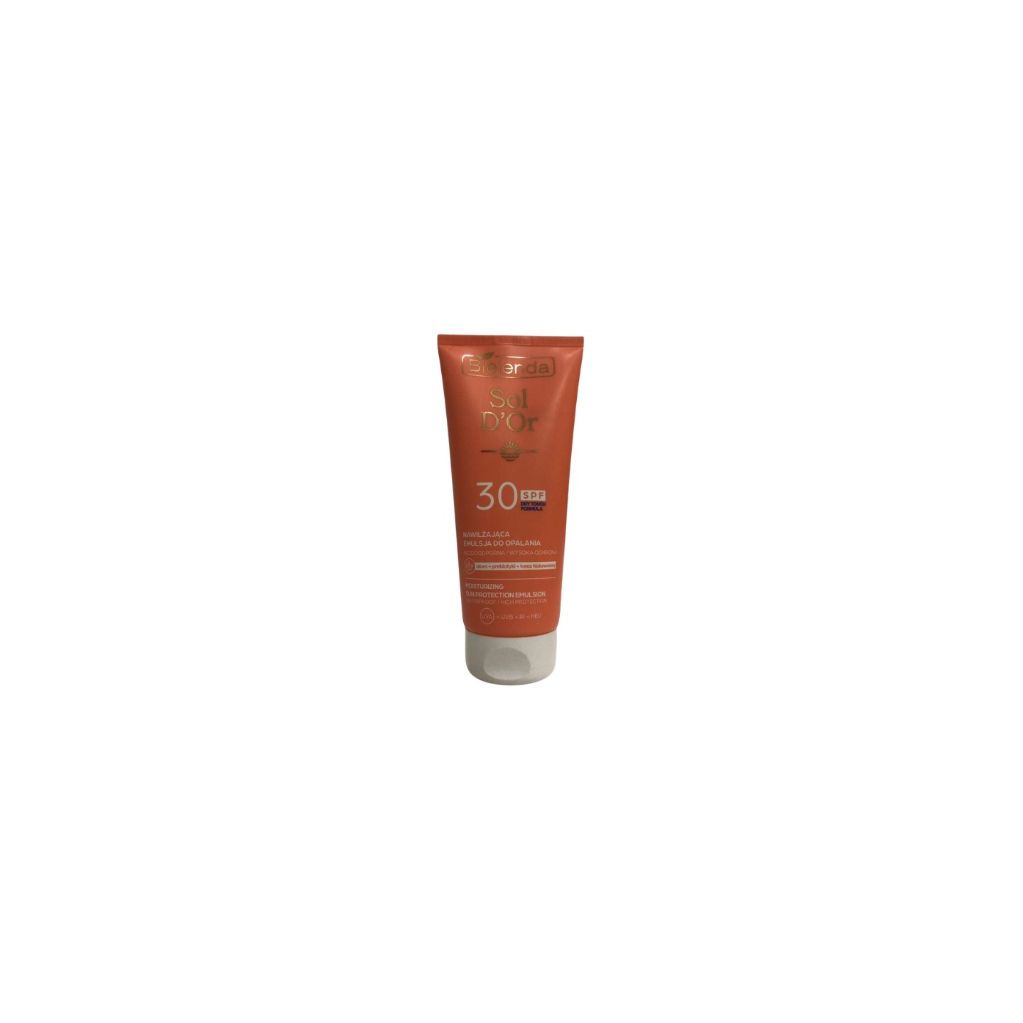 Зволожувальний сонцезахисний крем Bielenda Sol D'OR SPF30 — це водостійка формула, розроблена для захисту та догляду за вашою шкірою під час перебування на сонці. Він забезпечує ефективний захист від UVA та UVB випромінювання, допомагаючи запобігти сонячним опікам та негативному впливу радіації. Легка консистенція емульсії дозволяє легко si її та швидко поглинатися, не залишаючи жирного чи липкого залишку. Це робить її ідеальною як для засмаги, так і для щоденного догляду за шкірою. Формула збагачена зволожуючими інгредієнтами, які допомагають підтримувати належний рівень зволоження шкіри та захищають її від висихання. Шкіра залишається м’якою, гладенькою та комфортною навіть після тривалого перебування на сонці.